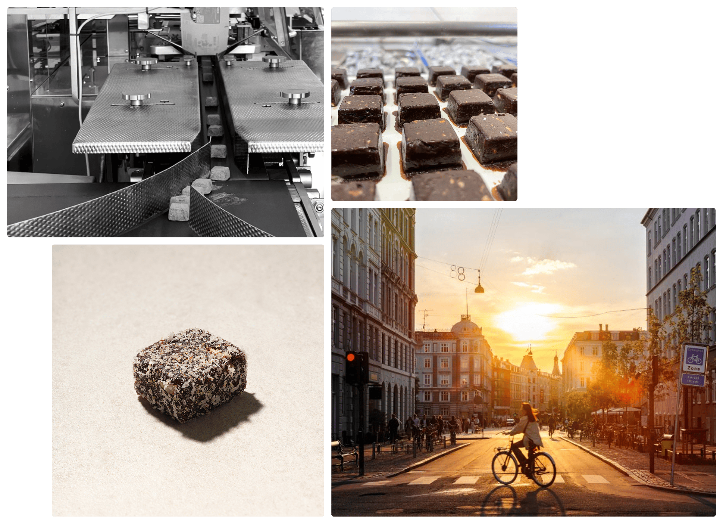 The production of healthy sweets continued in the kitchen in Farum until January 2017, when they moved into a defunct petrol station in Humlebæk – a date ball's throw from Louisiana. Since then, it's only been onwards and upwards. After taking over the petrol station, there was suddenly room for top-professional machinery, including a rolling machine, which is the machine that shapes the confectionery mass into cubes and bars. This has really given production a boost.